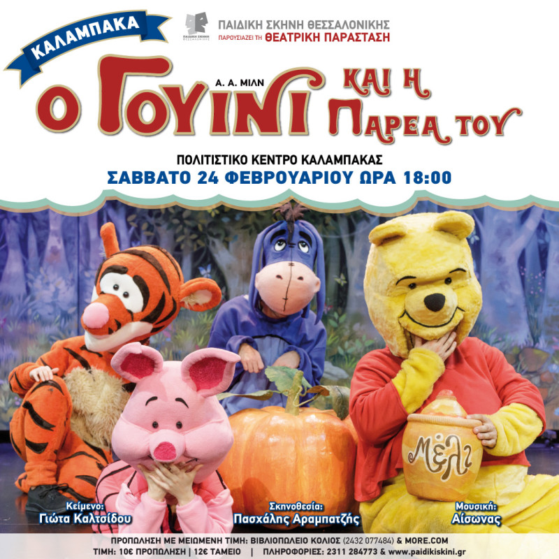 Μετά τις sold out παραστάσεις στη Θεσσαλονίκη και την επιτυχημένη περιοδεία σε όλη την Ελλάδα, ο Γουίνι και η παρέα του συνεχίζουν ανανεωμένοι το όμορφο ταξίδι τους, και έρχονται στην Καλαμπάκα, για μια μόνο παράσταση, στο Πολιτιστικό Κέντρο, το Σάββατο 24 Φεβρουαρίου στις 18:00.