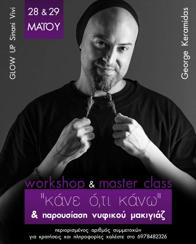 Το Σάββατο 28/5 θα έχετε την ευκαιρία να παρακολουθήσετε από κοντά το workshop #κανε_οτι_κανω , να μάθετε μυστικά και να βάψετε υπό την καθοδήγηση του διάσημου μακιγιέρ. Θεωρία, Μορφολογία προσώπου τεχνικές και άλλα πολλά. (Θα υπάρξουν 2 τμήματα, πρωινό και απογευματινό)