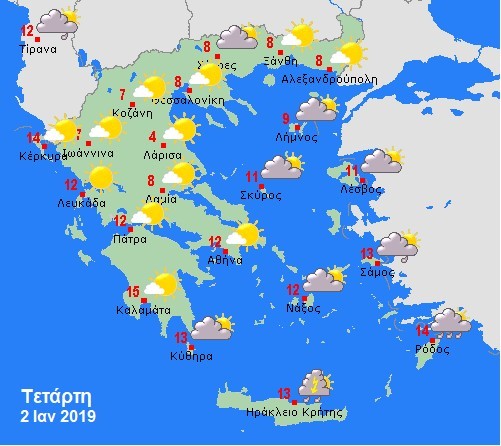 Πρόγνωση για την Πέμπτη 3 Ιανουαρίου 2019