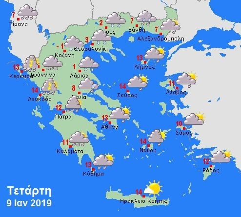 Πρόγνωση για την Πέμπτη 10 Ιανουαρίου 2019