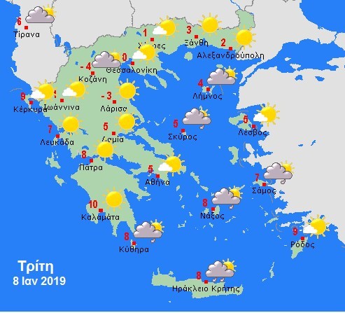 Πρόγνωση για την Τετάρτη 9 Ιανουαρίου 2019