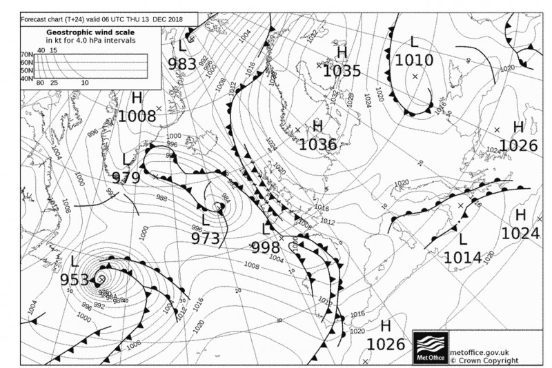 Στον παρακάτω χάρτη βλέπουμε την διάταξη των συστημάτων αύριο Πέμπτη 13 Δεκεμβρίου