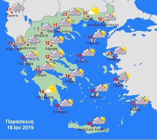 Ο καιρός της Σαββατοκύριακου 19-20 Ιανουαρίου 2019