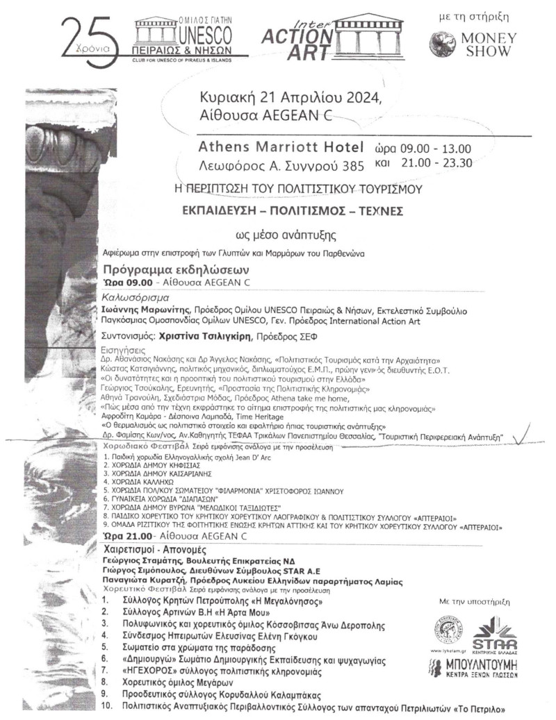 Η εκδήλωση θα πραγματοποιηθεί στο Athens Marriott Hotel στην Αθήνα με θέμα “Η ΠΕΡΙΠΤΩΣΗ ΤΟΥ ΠΟΛΙΤΙΣΤΙΚΟΥ ΤΟΥΡΙΣΜΟΥ-ΕΚΠΑΙΔΕΥΣΗ-ΠΟΛΙΤΙΣΜΟΣ-ΤΕΧΝΕΣ” με πρωτοβουλία του Ομίλου UNESCO Πειραιώς και Νήσων και ο Κώστας Φαμίσης θα αναπτύξει το θέμα « Τουριστική Περιφερειακή Ανάπτυξη». Αναμφίβολα η ανέλιξη του συντοπίτη μας Κώστα Φαμίση αποτελεί ιδιαίτερη τιμή και αναγνώριση του έργου και της ανιδιοτελούς προσφοράς του, όχι μόνο για τον ίδιο αλλά και για την περιοχή μας…