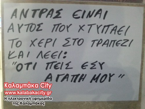 Μια ακόμη άποψη του ανάρτησε στην επιχείρησή του ο κομμωτής φίλος μας επί της οδού Κονδύλη “Κώστας” αναγράφοντας ποιος είναι άντρας!