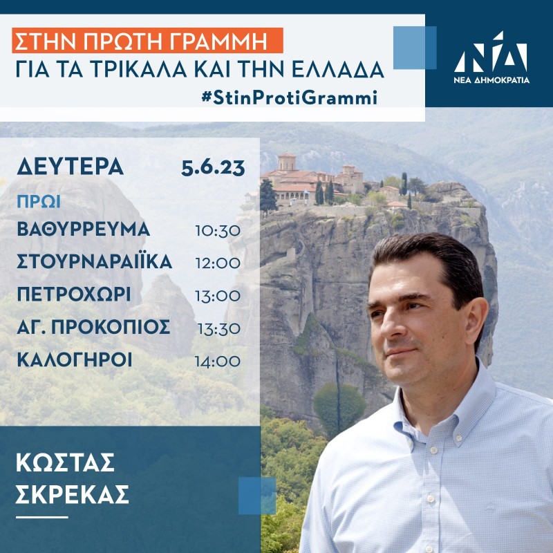 Ο Κώστας Σκρέκας, τη Δευτέρα 5 Ιουνίου, θα επισκεφθεί τα ακόλουθα χωριά: