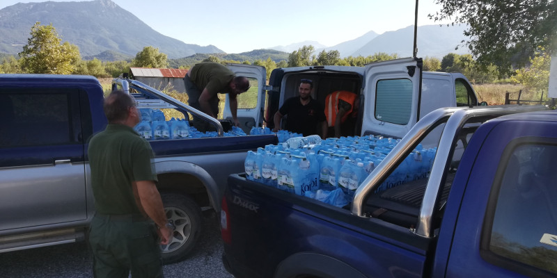 Μέλη του διοικητικού συμβουλίου οι ομοσπονδιακοι θυροφύλακες αλλά και μέλη εθελοντές κυνηγοί συνέλαβαν με τα οχήματα τους ώστε να φτάσουμε στα χωριά μέσα από δασικούς δρόμους για τον εφοδιασμό των χωριών.