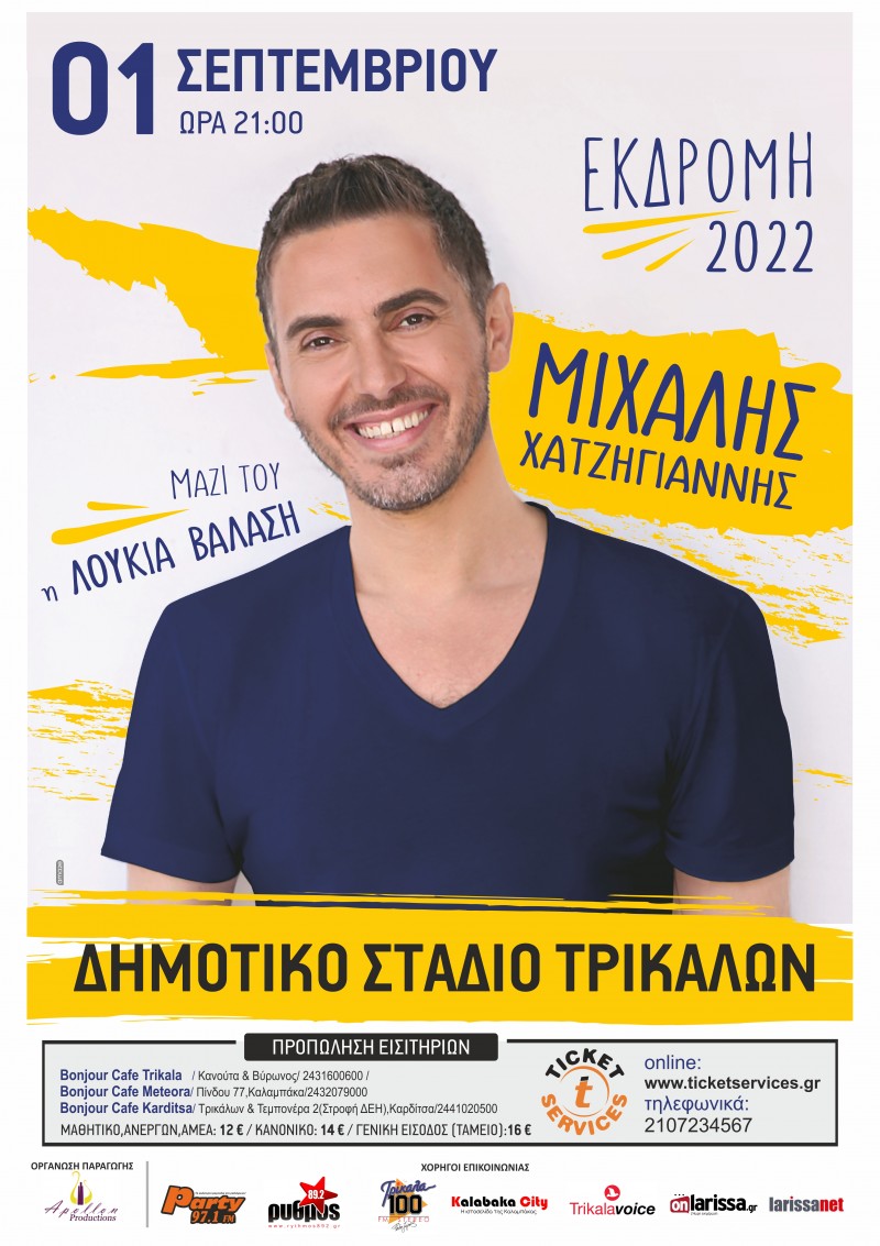 Στο Δημοτικό Στάδιο Τρικάλων, στη 1 Σεπτεμβρίου και ώρα 21:00 με τραγούδια που έχουν χαραχθεί βαθιά στην ψυχή μας , θα μας γεμίσει με όμορφα συναισθήματα, μοναδικές μελωδίες και καλή διάθεση!