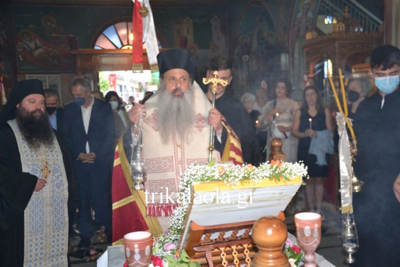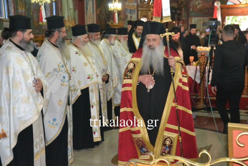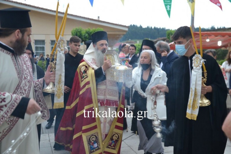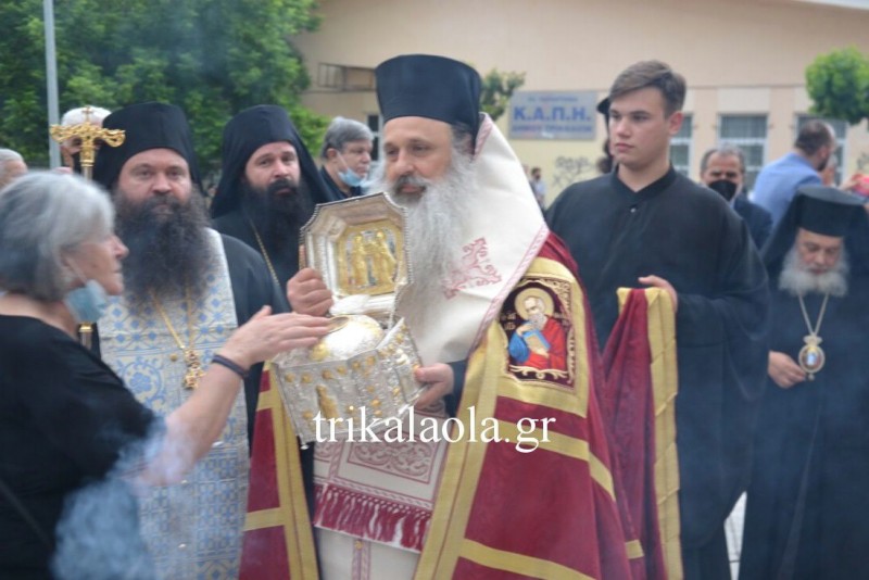Το απόγευμα της Δευτέρας έγινε στα Τρίκαλα η υποδοχή της Τιμίας Κάρας του Αγίου Νικολάου εκ Μετσόβου υπό του Σεβασμιωτάτου Μητροπολίτου Σταγών και Μετεώρων κ. Θεοκλήτου του Κλήρου και του Λαού, έμπροσθεν των προπυλαίων του Ιερού Ναού.