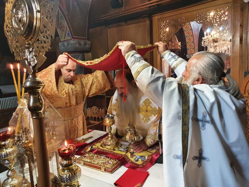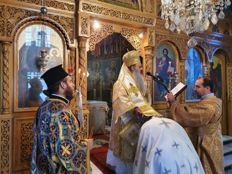 Προ της απολύσεως, ο σεπτός μας Ποιμενάρχης χειροθέτησε σε Οικονόμο τον Εφημέριο του Ναού, π. Αθανάσιο Ζαρκαδή.