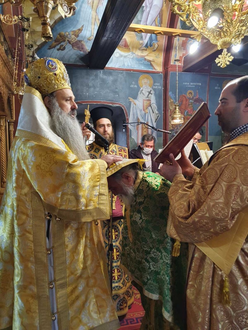 Προ της απολύσεως, ο σεπτός μας Ποιμενάρχης χειροθέτησε σε Πρωτοπρεσβύτερο τον Εφημέριο του Ναού, π. Νικόλαο Δημουλά.
