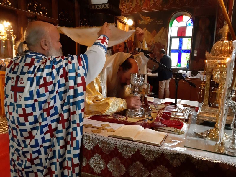 Τον Σεβασμιώτατο πλαισίωσαν στη θεία Λειτουργία ο Πανοσιολογιώτατος Αρχιμανδρίτης Αλέξιος Μπουρλής καθώς και ο εφημέριος της ενορίας Πρωτ. Απόστολος Γκαραγκάνης.