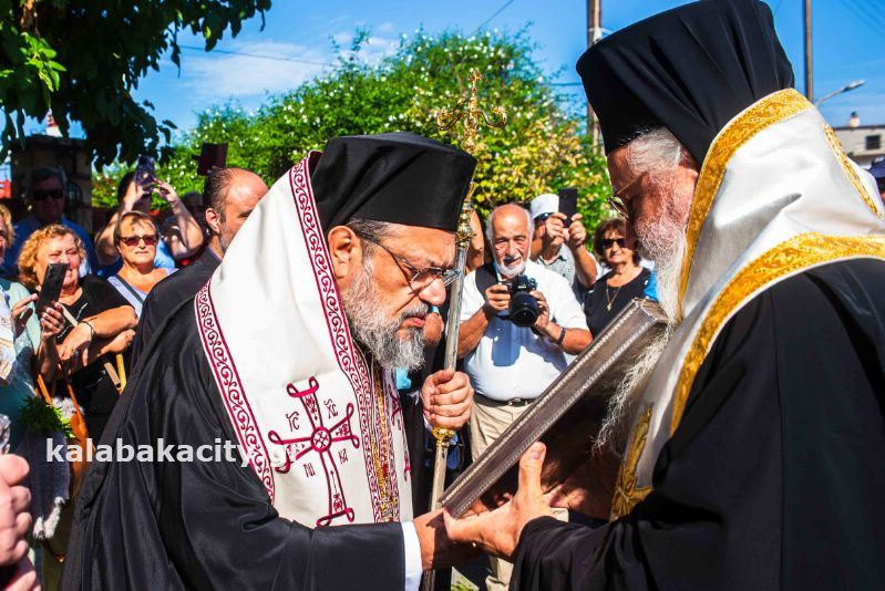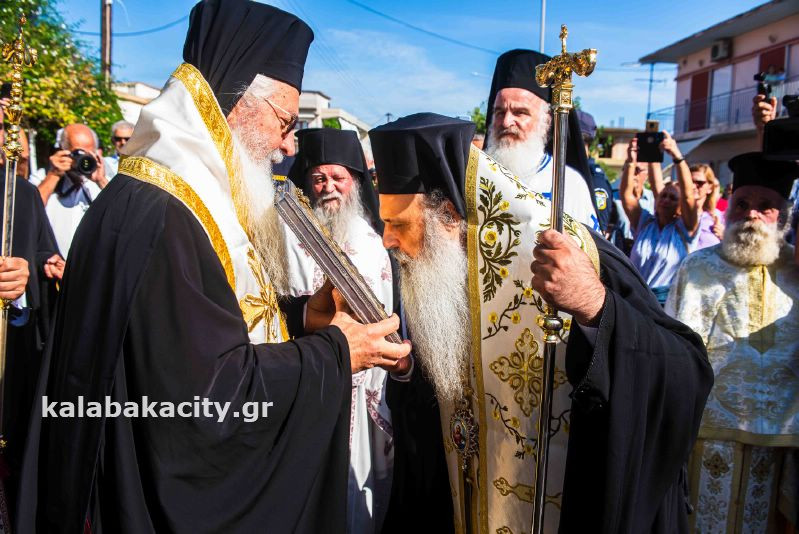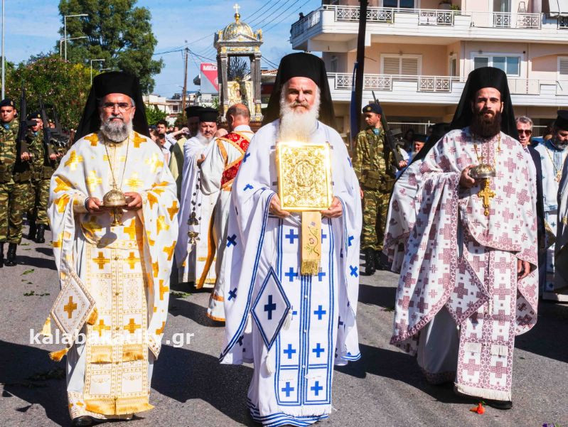Της υποδοχής και της λιτανείας προέστησαν οι Μητροπολίτες Θηβών, Λεβαδείας και Αυλίδος κ. Γεώργιος, Σταγών και Μετεώρων κ. Θεόκλητος και Μεσσηνίας κ. Χρυσόστομος.