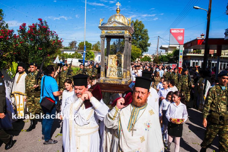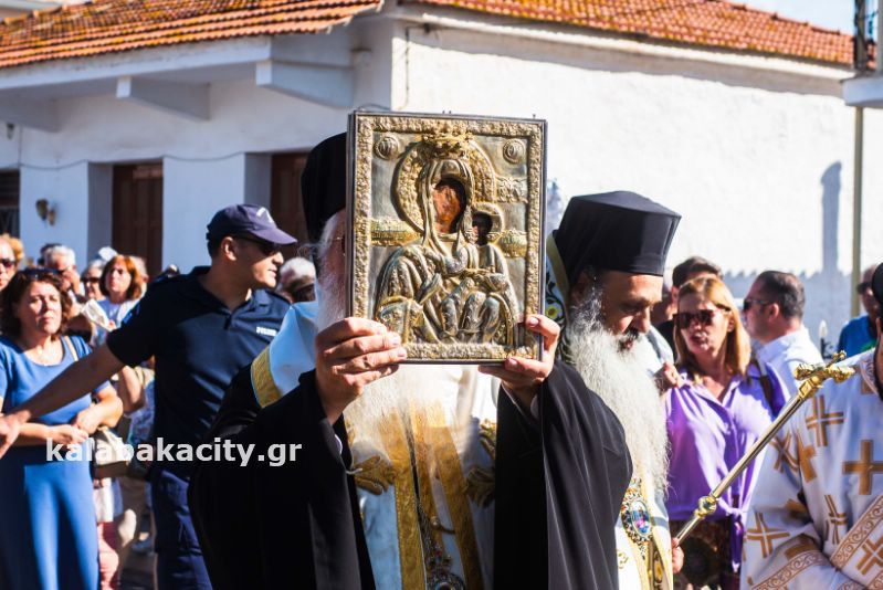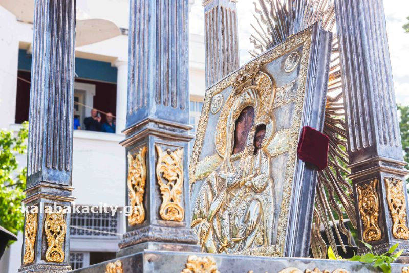 Η Ιερά Εικόνα με λιτανευτική πομπή περιήλθε τους κεντρικούς δρόμους της πόλης, οι οποίοι ήταν στρωμένοι με μυρτιές και άνθη καταλήγοντας στο Μετοχιακό Ιερό Ναό Ζωοδόχου Πηγής, όπου και εναποτέθηκε για οχταήμερο προσκύνημα.