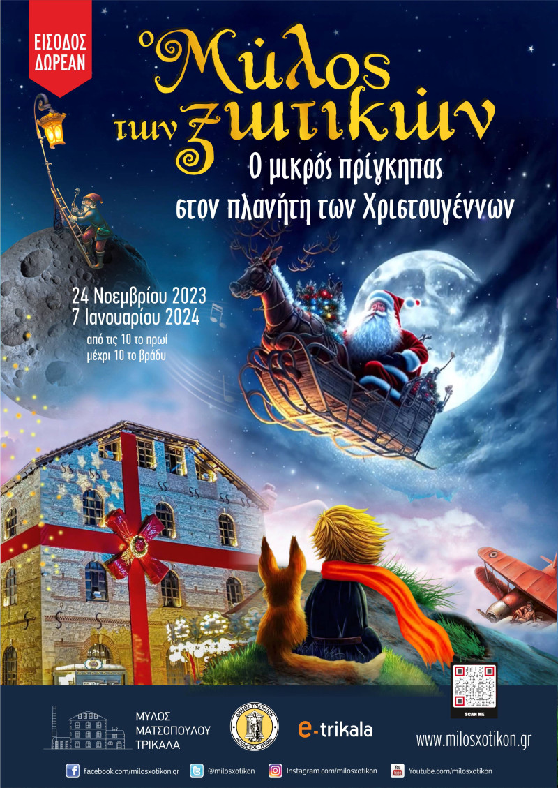 Φέτος ο Μύλος των Ξωτικών θα ανοίξει τις πύλες του στις 24 Νοεμβρίου και θα λειτουργεί καθημερινά μέχρι τις 7 Ιανουαρίου 2024 από τις 10:00 το πρωί μέχρι τις 10:00 το βράδυ!.