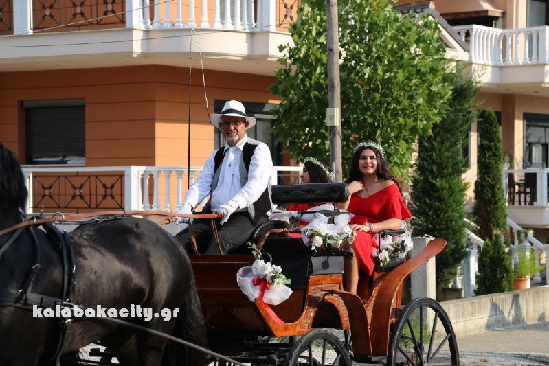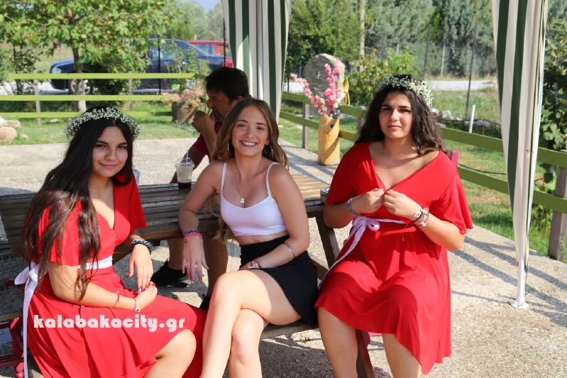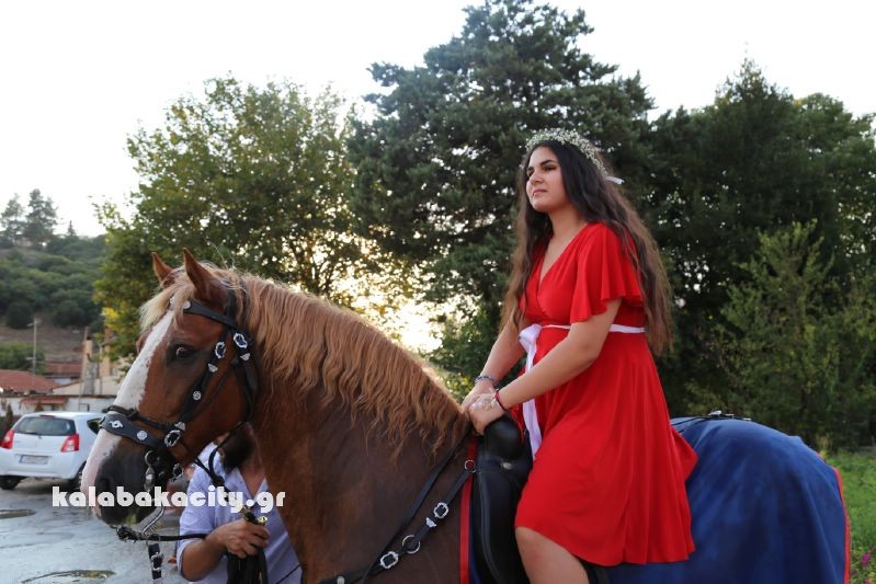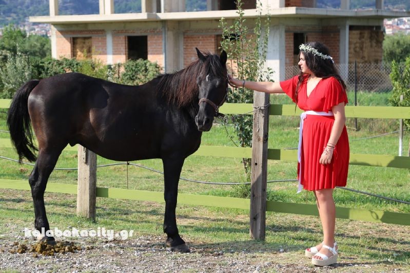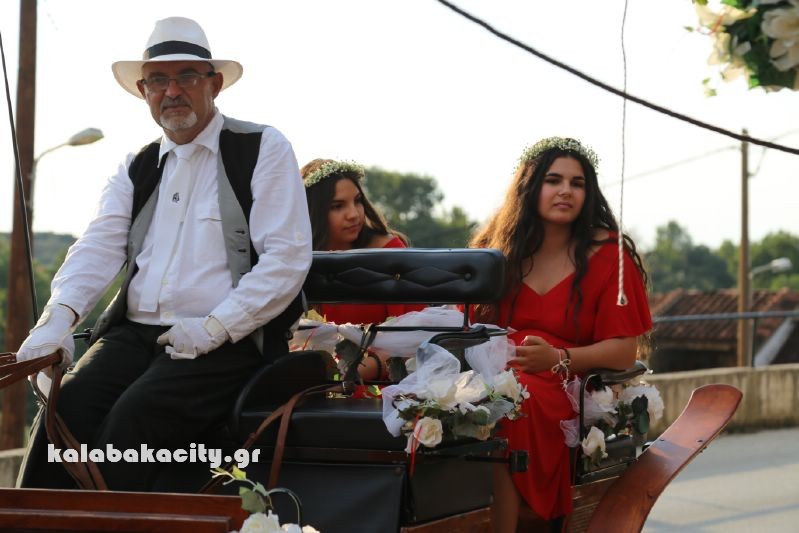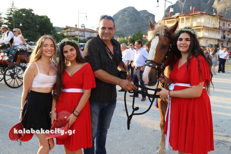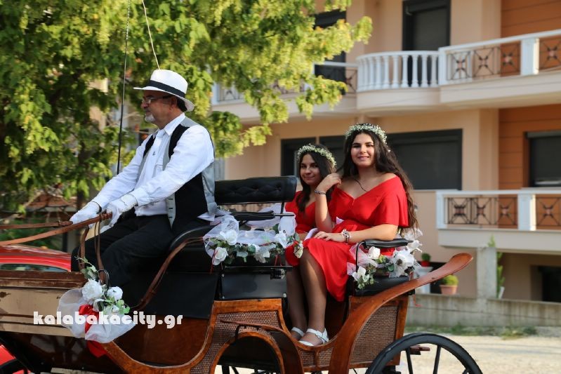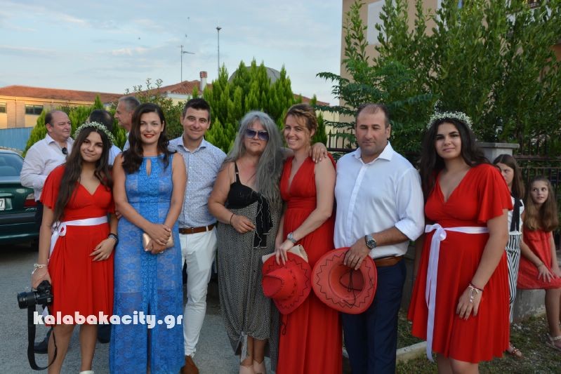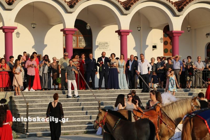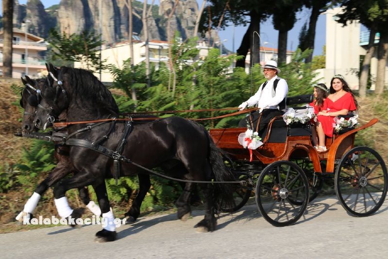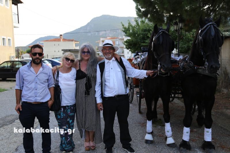 Άμαξα ειδικά στολισμένη έφτασε στο σπίτι της Στέλλας την οποία συνόδευαν με κόκκινες ενδυμασίες οι εντυπωσιακές Κωνσταντίνα – Μαρία και Άννα – Ελευθερία Τζιουβάρα καθώς και φίλοι του ζευγαριού με τα άλογά τους.