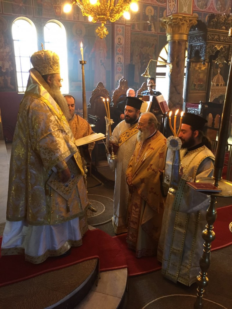 Προ της απολύσεως της θείας λειτουργίας, ο σεπτός Ποιμενάρχης μας χειροθέτησε σε πρωτοπρεσβύτερο τον εφημέριο του ιερού ναού, π. Κωνσταντίνο Βάλλα και σε αναγνώστη τον επί 40 έτη Ιεροψάλτη κ.Χρήστο Δημάδη.