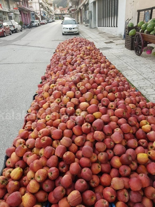 Ο πιο μεγάλος πάγκος με μήλα έχει στηθεί έξω από το μανάβικο « Δουμάκας » – οδός Ιωαννίνων δίπλα από τον πρώην ΟΤΕ – της πόλης μας σήμερα Παρασκευή.