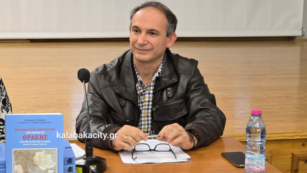 Με ιδιαίτερη επιτυχία και σημαντική προσέλευση κοινού πραγματοποιήθηκε την Παρασκευή 13 Φεβρουαρίου 2026 η παρουσίαση του βιβλίου με τίτλο «Μετοικεσίες Ηπειρωτών στην περιοχή της Θράκης από τον 15ο έως τον 21ο αιώνα – Ιστορική και λαογραφική προσέγγιση», που διοργάνωσε ο Πολιτιστικός Σύλλογος Ηπειρωτών Δήμου Μετεώρων «ΑΠΕΙΡΩΤΑΝ».