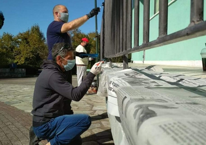 Από το πρωί της Δευτέρας οι τρεις τους έπιασαν τα πινέλα και βάφουν τα κάγκελα του Δημοτικού Σχολείου Καστρακίου όπως φαίνεται και από την φωτογραφία που υπάρχει στο instagram του προέδρου.