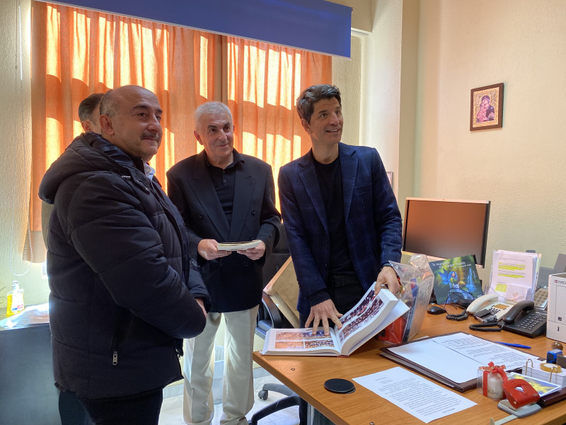 Σημειώνεται ότι ο διευθυντής του σχολείου κ. Αθαν. Κατσιούλας προσέφερε ως δώρο στον Σάκη Ρουβά, την έκδοση για τα 125 χρόνια της Δημοτικής Φιλαρμονικής Τρικάλων. Κάτι που ήταν αντικείμενο συζήτησης με τον Κερκυραίο Σάκη Ρουβά και τη συνεργασία της τρικαλινής φιλαρμονικής με φιλαρμονικές του Ιόνιου νησιού.
