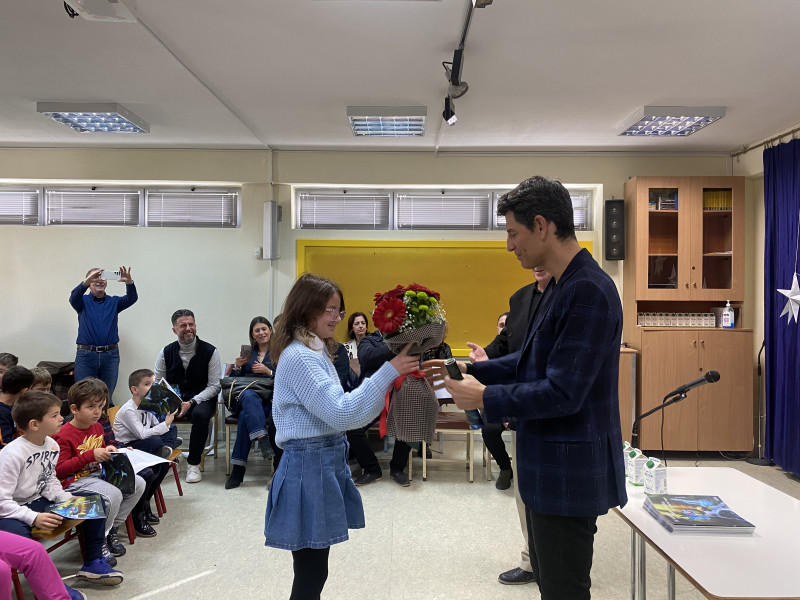 Ο αγαπημένος ερμηνευτής της νεολαίας και της… λίγο μεγαλύτερης νεολαίας επισκέφθηκε το σχολείο την Πέμπτη 30 Νοεμβρίου 2023, στο πλαίσιο δράσης περιβαλλοντικής ευαισθητοποίησης που διοργανώθηκε με τη στήριξη και τη συνεργασία της εταιρίας φυσικού μεταλλικού νερού «ΘΕΟΝΗ», σε συνεργασία με τον Σύλλογο Γονέων και κηδεμόνων του Σχολείου.
