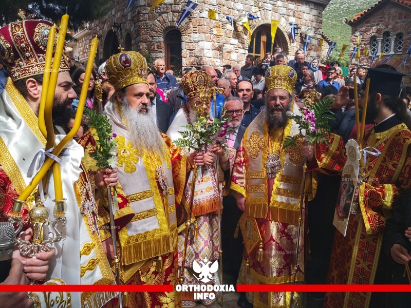 Με την παρουσία χιλιάδων προσκυνητών από την Ελλάδα και το εξωτερικό τελέστηκε σήμερα το πρωί μέσα σε κλίμα αναστάσιμης χαράς η πολυαρχιερατική θεία λειτουργία στην ιερά μονή του Ευαγγελισμού της Θεοτόκου και του Αγίου Εφραίμ στο Όρος των Αμώμων στη Νέα Μάκρη.