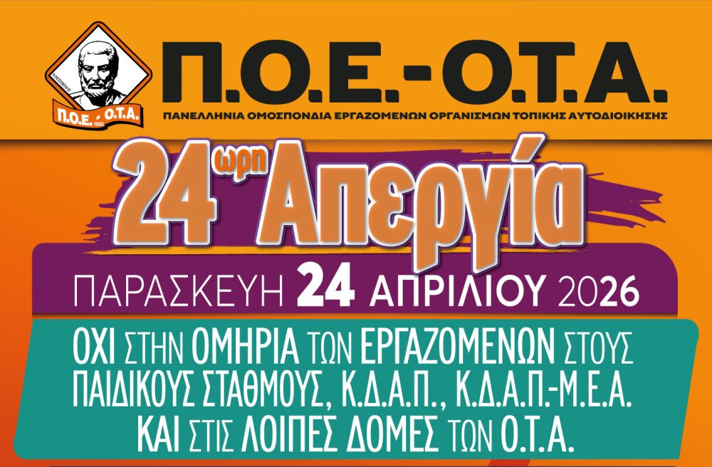 • Παρασκευή 24-04-2026 – 24ωρη ΠΑΝΕΛΛΑΔΙΚΗ ΑΠΕΡΓΙΑ