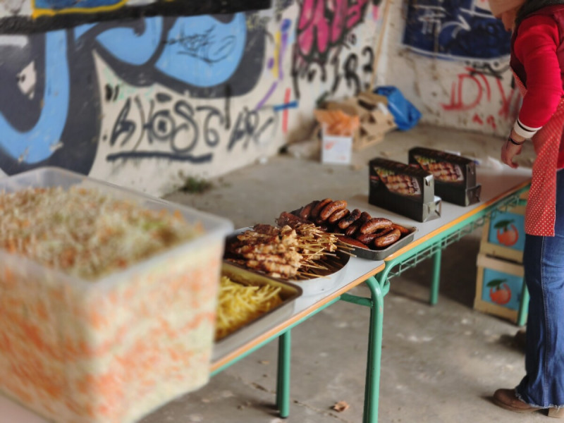 Οι άνθρωποι του ΜοιράΖΩμαι έστεισαν τις ψησταριές στο προαύλιο του παλιού δημοτικού σχολείου Αγίων Αποστόλων όπου ψήνουν με μεράκι και χαμόγελο και στη συνέχεια ετοιμάζουν τα δέματα αγάπης για να δώσουν αυτή τη μικρή, έστω, χαρά στους κατοίκους των ορεινών χωριών.