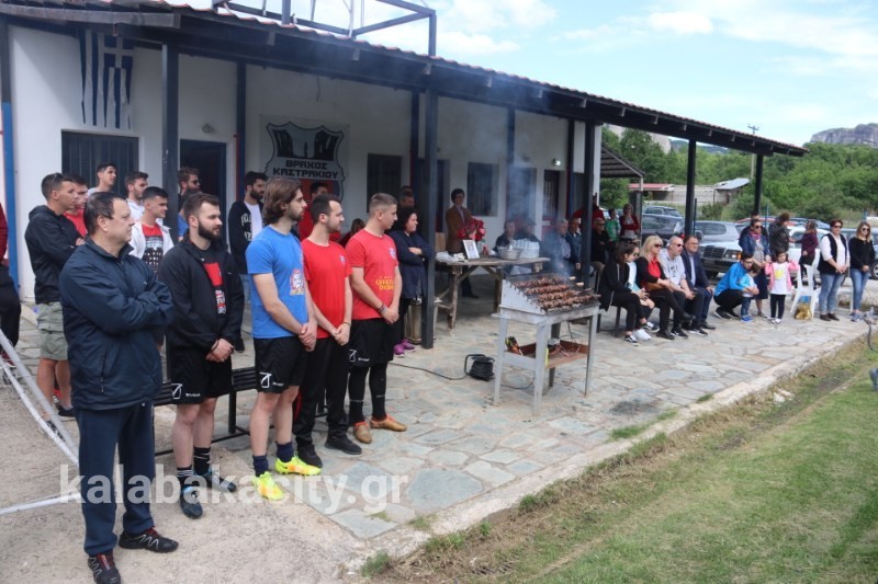 Ο φιλικός αγώνας ξεκίνησε μέσα σε κλίμα συγκίνησης με χαιρετισμό του προέδρου του Βράχου Καστρακίου κ. Βασίλη Χουτέα και απονομή αναμνηστικών στις οικογένειες του Θανάση Ταση και Κώστα Μπαουτη καθώς και στυς παλαίμαχους των Μετεώρων.