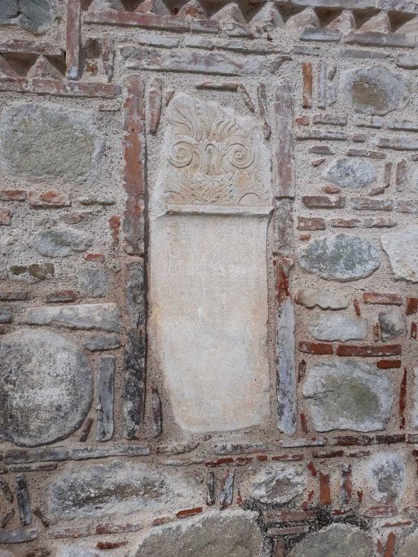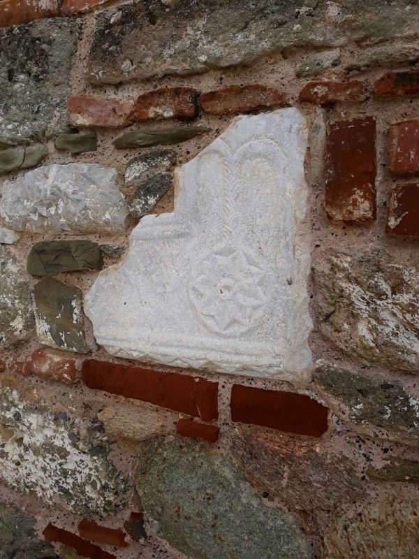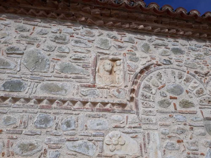 Αν όμως η θεμελίωση του παλαιοχριστιανικού ναού πάνω σε αρχαίο ελληνικό ναό είναι μια υπόθεση, η ύπαρξη στον νότιο εξωτερικό τοίχο εντοιχισμένων αρχαίων τμημάτων ανάγλυφων (ρόδακες, ανάγλυφες παραστάσεις, επιγραφές, ακρωτήρια κ.α.), καθώς κι ενός παλαιοχριστιανικού γλυπτού με κληματίδα είναι μια πραγματικότητα.