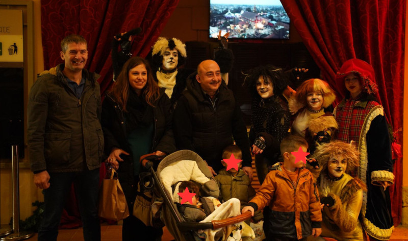 Αμέσως τον περιτριγύρισαν τα ξωτικά και οι γάτες και τον καλωσόρισε ο Δήμαρχος Τρικκαίων Νίκος Σακκάς, ο οποίος ευχήθηκε “Καλή χρονιά” στον επισκέπτη, τη σύζυγό του και τα παιδιά τους. Η οικογένεια κατάγεται από τις Σέρρες.