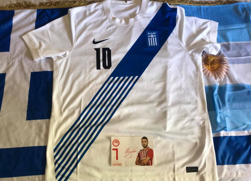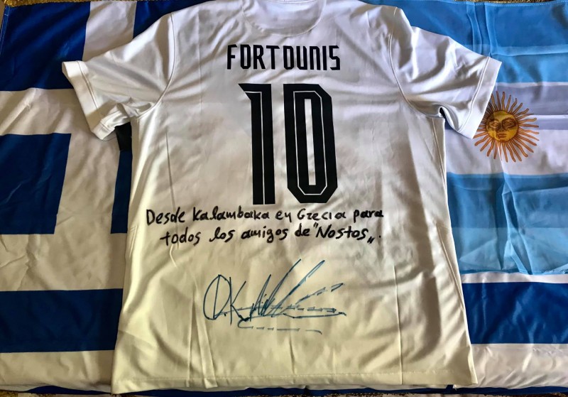 Πολλά συγχαρητήρια στον Κώστα Φορτούνη, που με χαρά υπέγραψε μια μπλούζα της εθνικής μας ομάδας ποδοσφαίρου, και την Πρόεδρο του Πολιτιστικού Συλλόγου “NOSTOS” της ελληνικής κοινότητας Αργεντινής, Χριστίνα Τσαρδίκου, που με τις ποικίλες δραστηριότητες του Συλλόγου κρατάει αναμμένη τη φλόγα της Ελλάδας στη μακρινή Αργεντινή.