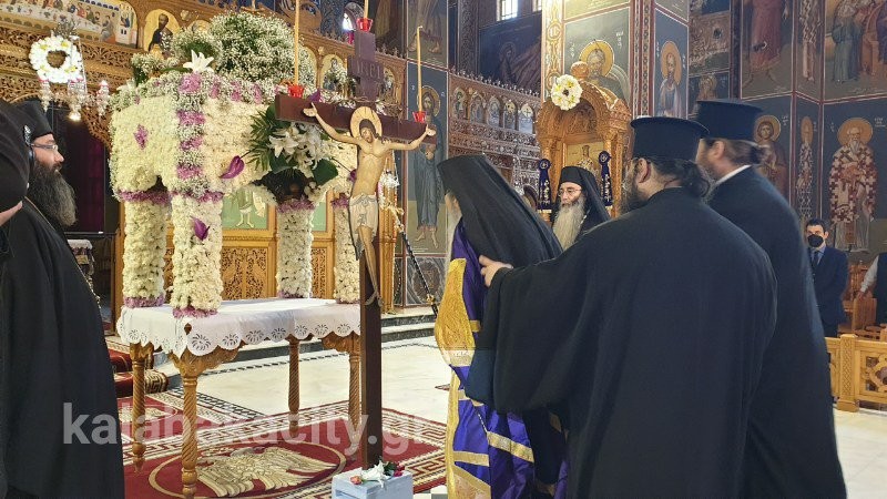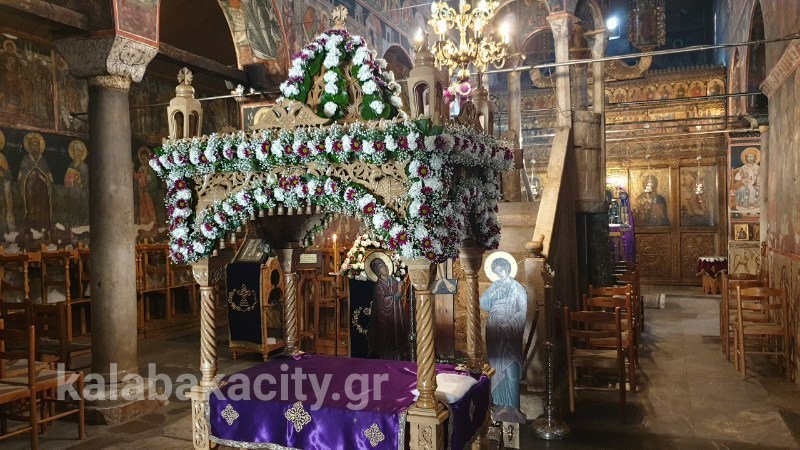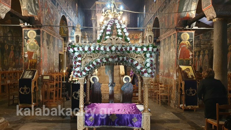 Επάνω ο Επιτάφιος του Ιερού Ναού Οσίων Μετεωριτών Πατέρων Καλαμπάκας