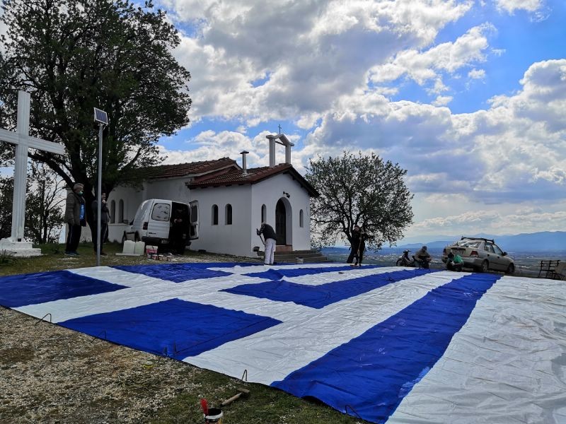 Σε μια πολυ όμορφη κίνηση προχώρησε την Παραμονή της 25ης Μαρτίου και του Ευαγγελισμού ο Σύλλογος Φίλων Δάσους Βασιλικής, τοποθετώντας μια σημαία 16*10 μέτρων κάτω από τον Προφήτη Ηλία στο βουνό της Βασιλικής.