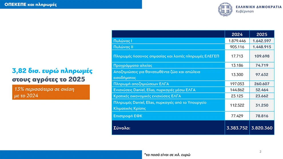 Όπως ανέφερε ο ίδιος υπήρξε καθυστέρηση ενός μήνα στις αγροτικές πληρωμές σε σχέση με το 2024, οι οποίες ξεκίνησαν φέτος στα τέλη του Νοεμβρίου μετά από επιστολή προς την Κομισιόν, διευκρινίζοντας ότι η Ελλάδα λαμβάνει τα ίδια κονδύλια από την ΕΕ για άμεσες ενισχύσεις.