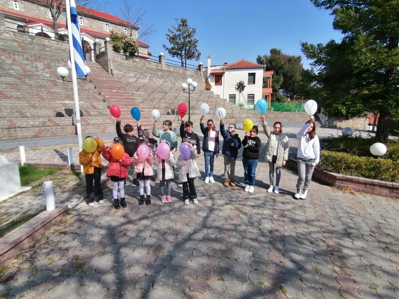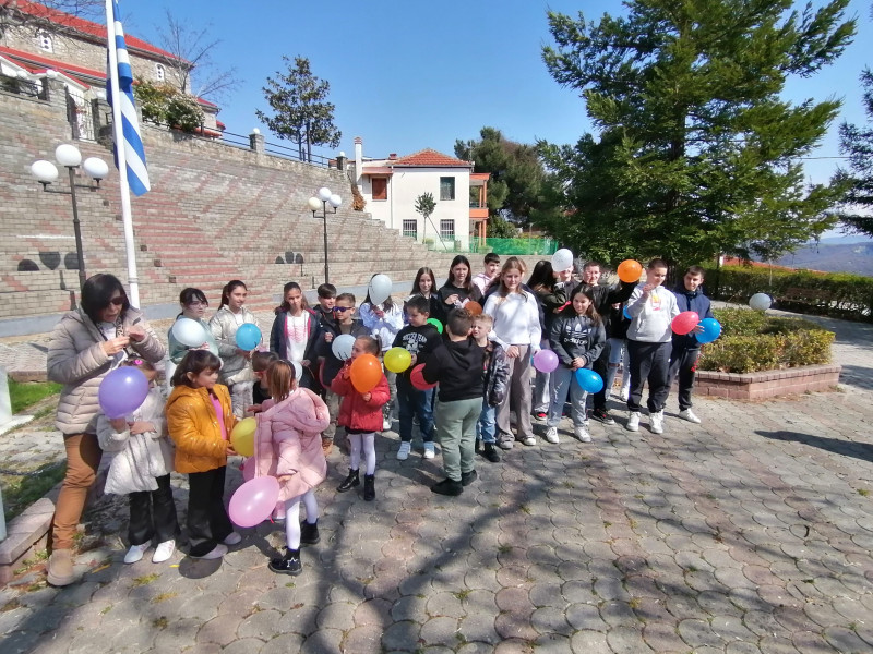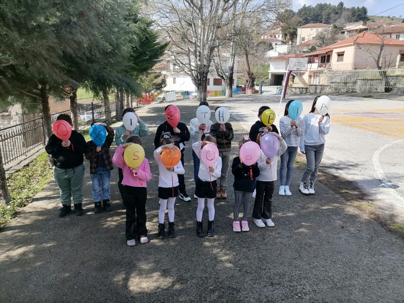 Η εκδήλωση έγινε στην πλατεία του χωριού με τα παιδιά να ενώνουν τι φωνές τους ενάντια στη Βία.