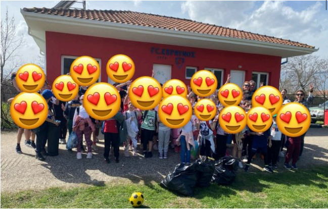 Με τον ωραίο ανοιξιάτικο ήλιο για σύντροφό μας, αφού απολαύσαμε το παιχνίδι μας κάτω από τον ήλιο, πριν φύγουμε σηκώσαμε τα μανίκια μας, βάλαμε γάντια και μαζέψαμε όλα τα σκουπίδια που βρήκαμε σε όλη την έκταση του γηπέδου. Όταν τελειώσαμε είχαμε μαζέψει τρεις μεγάλες σακούλες σκουπιδιών, όμως νιώσαμε μεγάλη χαρά που αντικρίσαμε το καταπράσινο γήπεδό μας και πάλι καθαρό και ανείπωτη υπερηφάνεια για τους μαθητές μας που έδειξαν τέτοια υπευθυνότητα και εργατικότητα. Τέλος, πλύναμε και καθαρίσαμε τα χέρια μας με οινόπνευμα και αποφασίσαμε να στείλουμε το μήνυμά μας σε όλους για να μας ακούσουν.