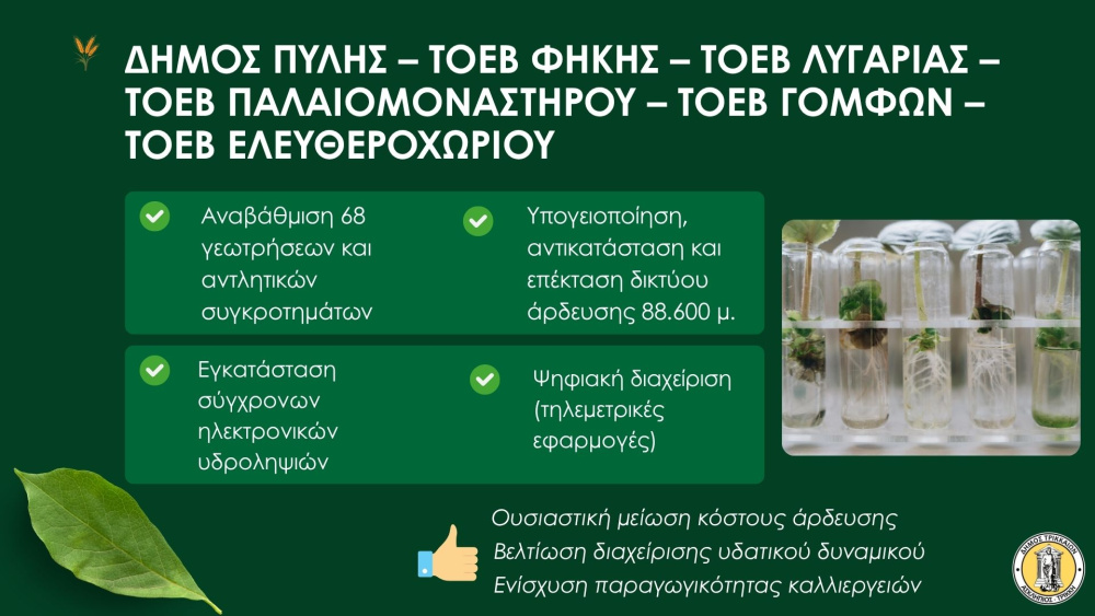 Το έργο αφορά 4 Δήμους και 10 ΤΟΕΒ, με στόχους: