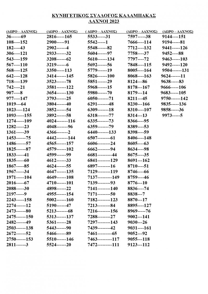 Οι τυχεροί λαχνοί της λαχειοφόρου του Κυνηγετικού Συλλόγου Καλαμπάκας Ανακοινώσεις Από admin Δημοσίευση Φεβ 13, 2023 -20:24 0 1.169 Κοινοποίηση FacebookTwitterΗλεκτρονικό ΤαχυδρομείοViber Από τον Κυνηγετικό Σύλλογο Καλαμπάκας ανακοινώθηκαν οι τυχεροί λαχνοί της Λαχειοφόρου που έγινε στον ετήσιο χορό του Συλλόγου. Οι τυχεροί λαχνοί είναι οι παρακάτω: 0 1.169 Κοινοποίηση