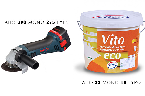 – Οικολογικό πλαστικό χρώμα VITO ECO ΠΛΑΣΤΙΚΟ της Vitex από 22 ευρώ ΜΟΝΟ με 18 ευρώ.