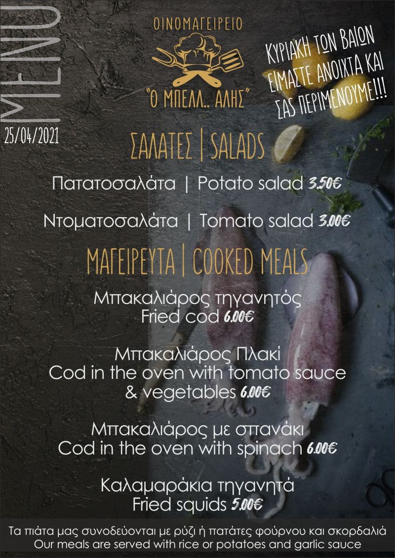 Οινομαγειρείο “ Ο ΜΠΕΛΛ… ΑΛΗΣ” – Απολαύστε την Κυριακή των Βαΐων μπακαλιάρο, καλαμαράκια και σαλάτες