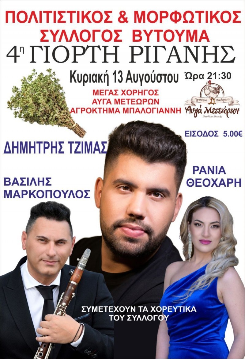 Την Κυριακή 13 Αυγούστου θα πραγματοποιηθεί η 4η Γιορτή Ρίγανης στον Βυτουμά Καλαμπάκας.