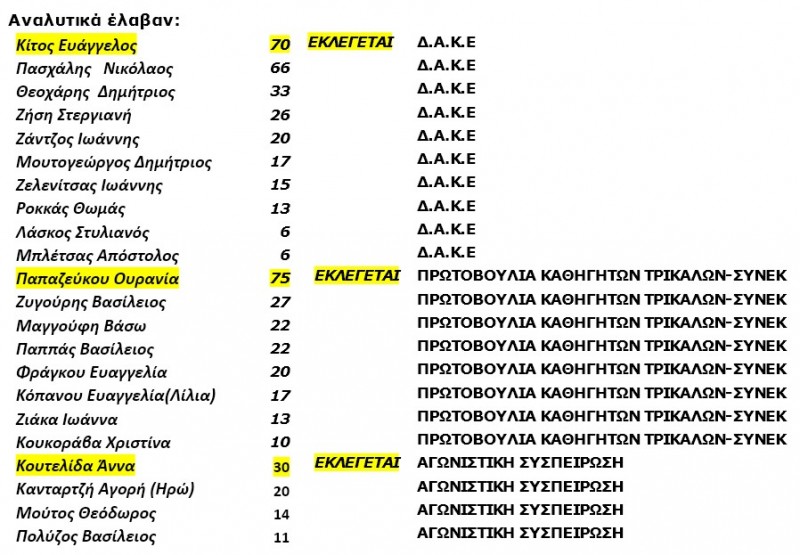 Οι ψήφοι των παρατάξεων έχουν ως εξής: