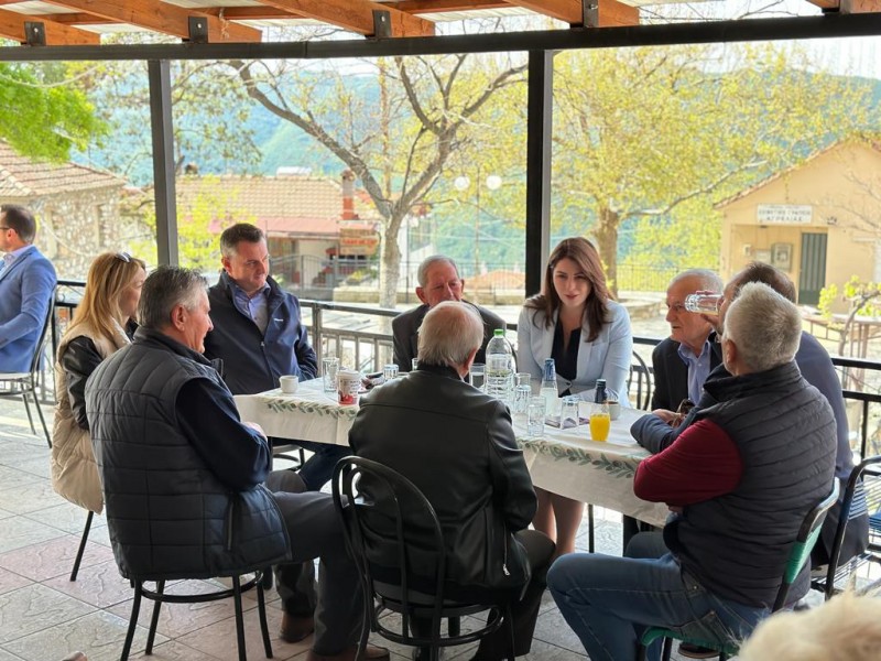 Επόμενες στάσεις της Υποψήφιας Βουλευτή, το Λιόπρασο, το Ελληνόκαστρο, ο Πλάτανος και το Ρίζωμα, όπου επισκέφθηκε τα τοπικά καφενεία και συνομίλησε με τους κατοίκους για αρκετή ώρα.