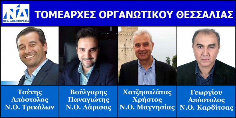 Ορίζονται ως Τομεάρχες – Σύνδεσμοι της Γραμματείας Οργανωτικού της ΝΔ στην Περιφέρεια Θεσσαλίας, οι παρακάτω:
