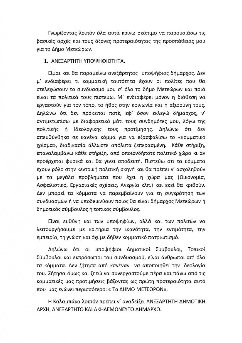 Ο κ. Αλέκος στο κείμενο που εστάλη και δημοσιεύεται ξεκαθαρίζει πως είναι και θα παραμείνει ανεξάρτητος υποψήφιος Δήμαρχος και δεν τον ενδιαφέρει η κομματική ταυτότητα των πολιτών που θα στελεχώσουν τον συνδυασμό!