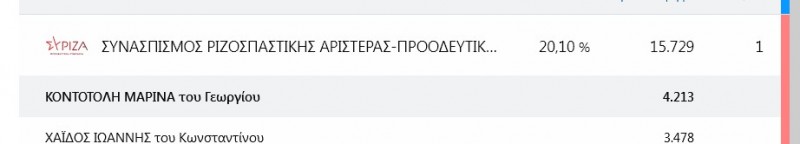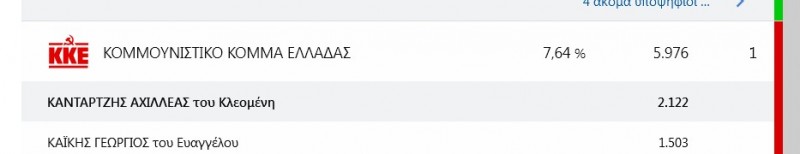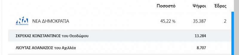Στα μεχρι τωρα αποτελέσματα πρώτοι που καταλαμβάνουν έδρες και εκλέγονται είναι οι κ.κ. Σκρέκας και Λιούτας από τη Ν.Δ. η κα Κοντοτόλη από ΣΥΡΙΖΑ και ο κ. Κανταρζτής από ΚΚΕ.