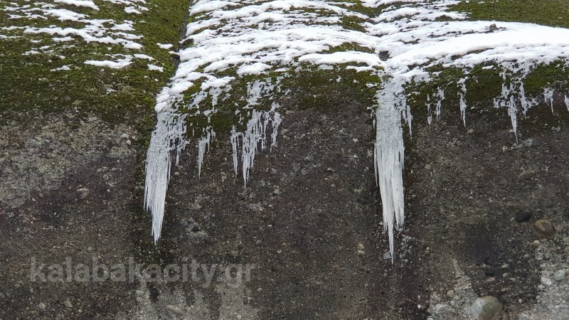 Το νερό από το χιόνι σε συνδυασμό με το πολύ κρύο δημιούργησε τεράστιους παγοκρυστάλλους στους βράχους των Μετεώρων οι οποίοι τραβούν τα βλέμματα όλων…