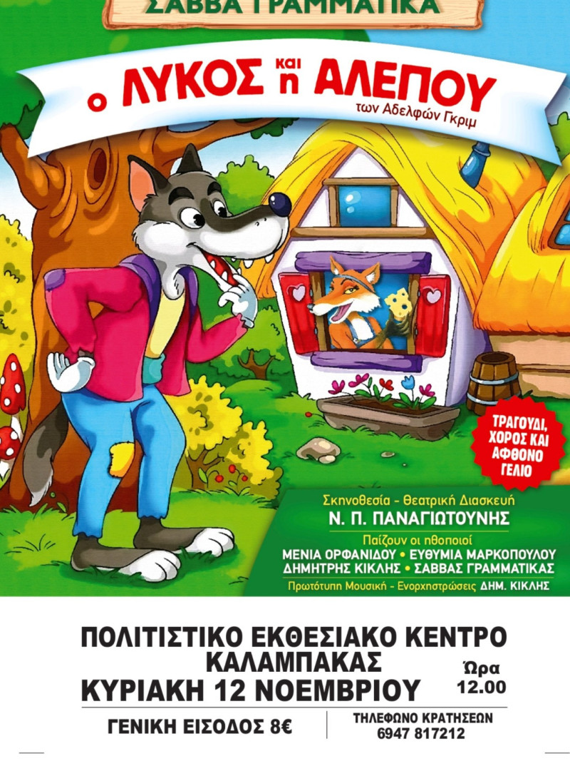 Ο Παιδικός Θίασος Σάββα Γραμμάτικα παρουσιάζει σε θεατρική διασκευή το κλασικό παραμύθι των αδελφών Γκριμ «Ο λύκος και η αλεπού».